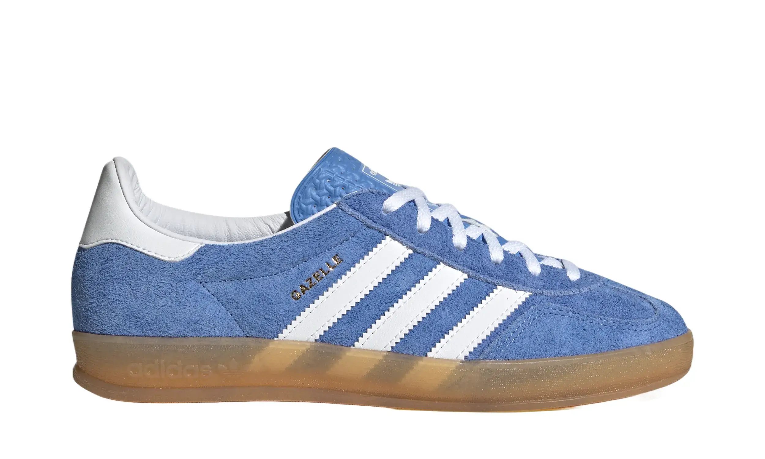 Adidas Gazelle Indoor Blue Fusion Gum to model inspirowany stylistyką lat 60. Cholewka wykonana z wysokiej jakości zamszu w odcieniu jasnego błękitu. Trzy skórzane paski w kontrastowej bieli dodają charakterystycznego, ponadczasowego akcentu.