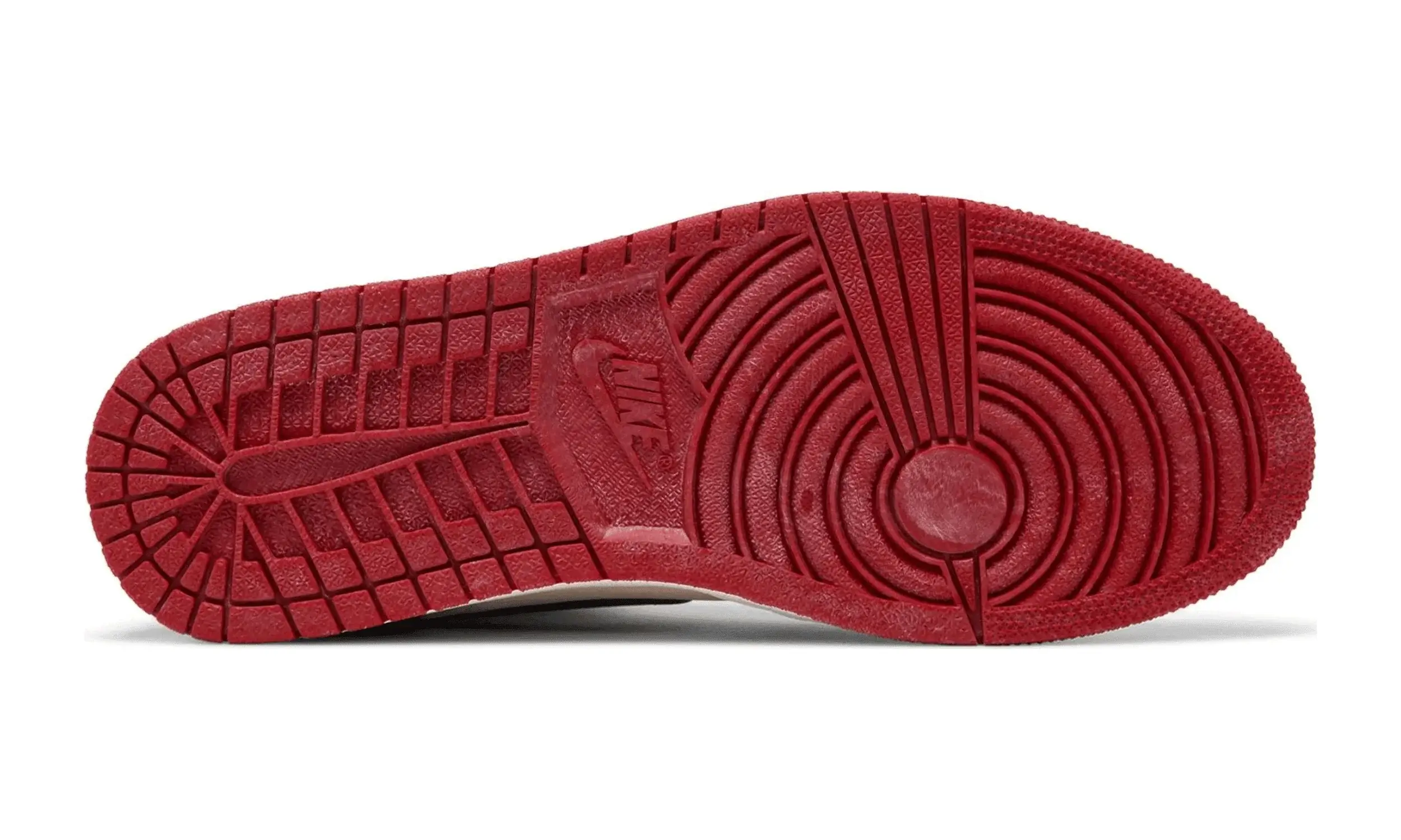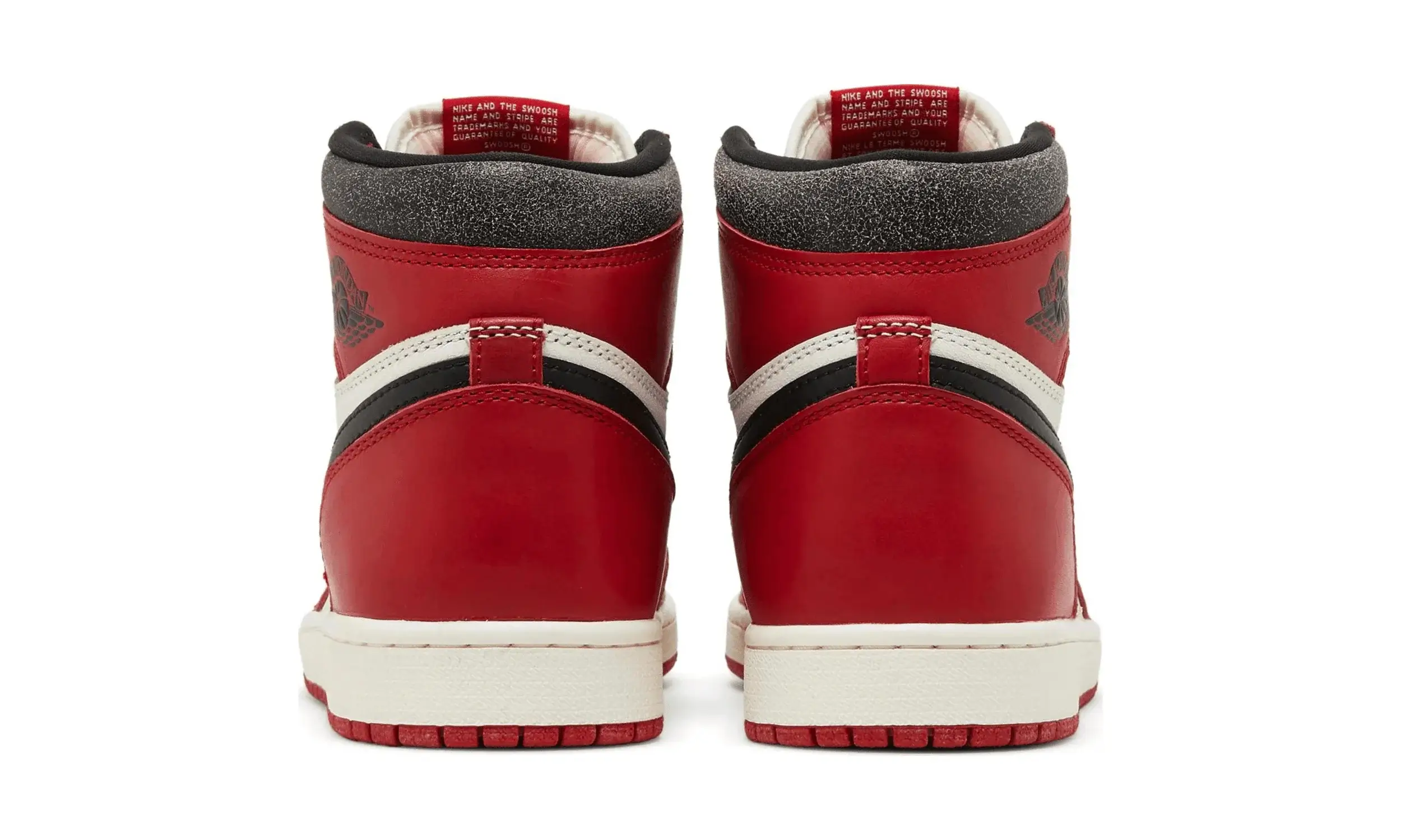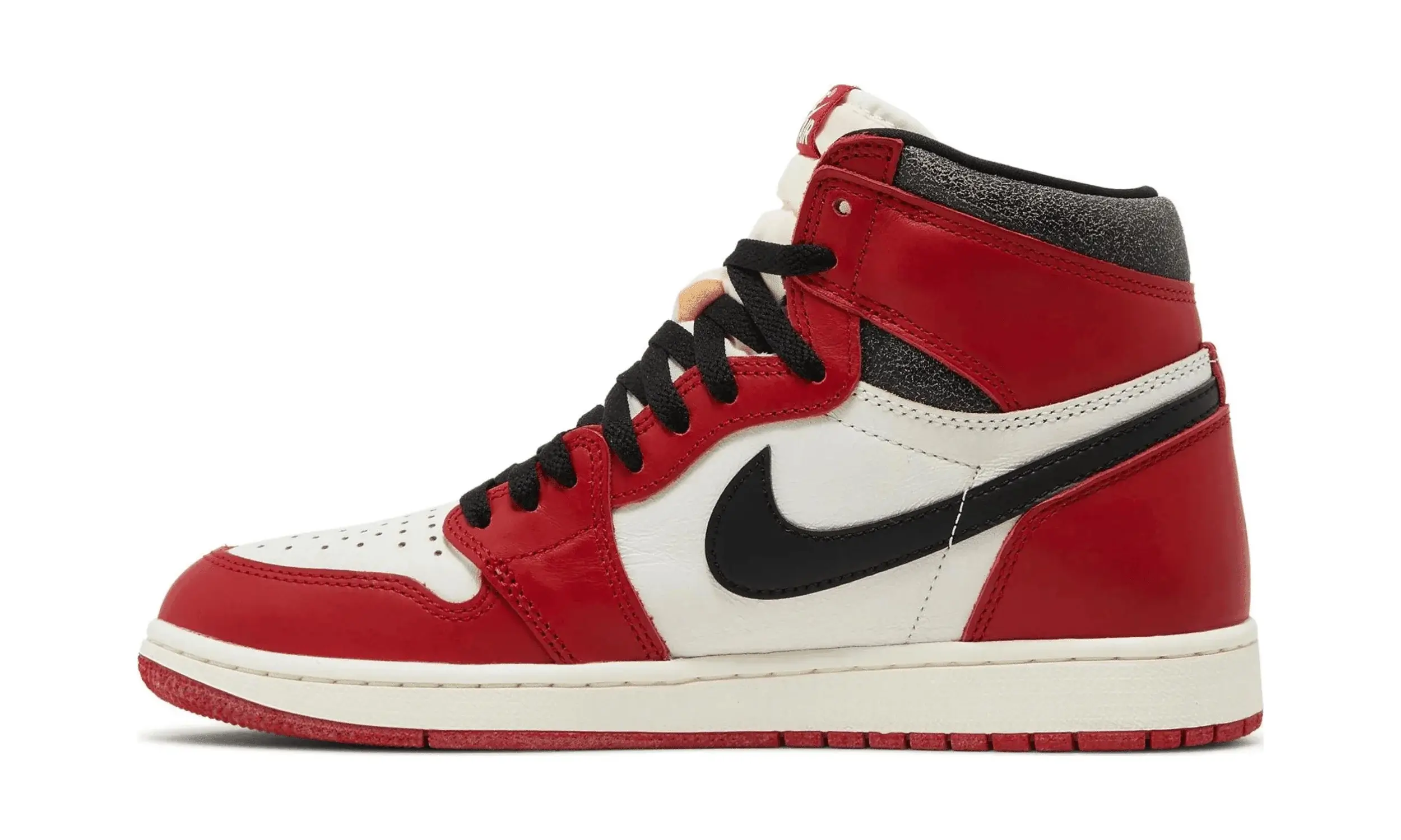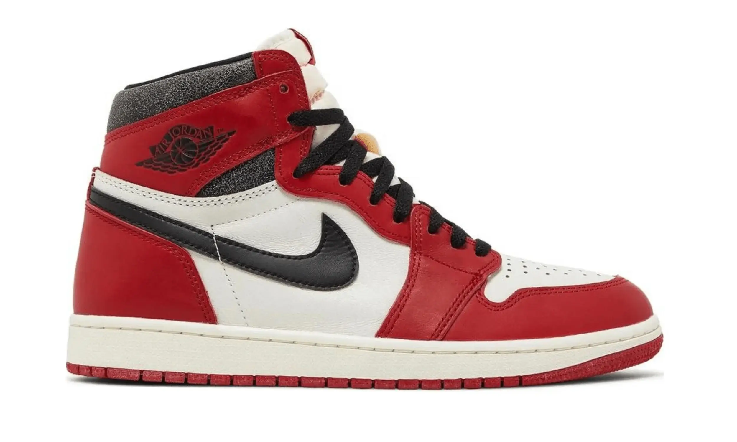 Buty Air Jordan 1 High Chicago Lost & Found to współczesna wersja klasycznego modelu Air Jordan 1 High z lat 80. Dominującą barwą tego modelu jest śnieżnobiała skóra, która stanowi bazę dla kontrastujących, czerwonych nakładek z przodu, z tyłu, w okolicach sznurowadeł, oraz czarnego logo Swoosh.