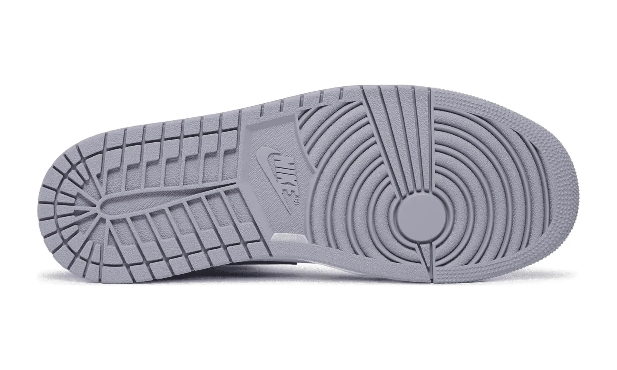 Na pięcie i kołnierzu zastosowano wykończenie w kolorze Cement Grey, które idealnie komponuje się z resztą buta. Warto zwrócić uwagę na brak charakterystycznego wzoru elephant print, co nadaje butom bardziej minimalistycznego wyglądu. Całość osadzono na szarej gumowej podeszwie zewnętrznej z białymi ściankami podeszwy środkowej.
