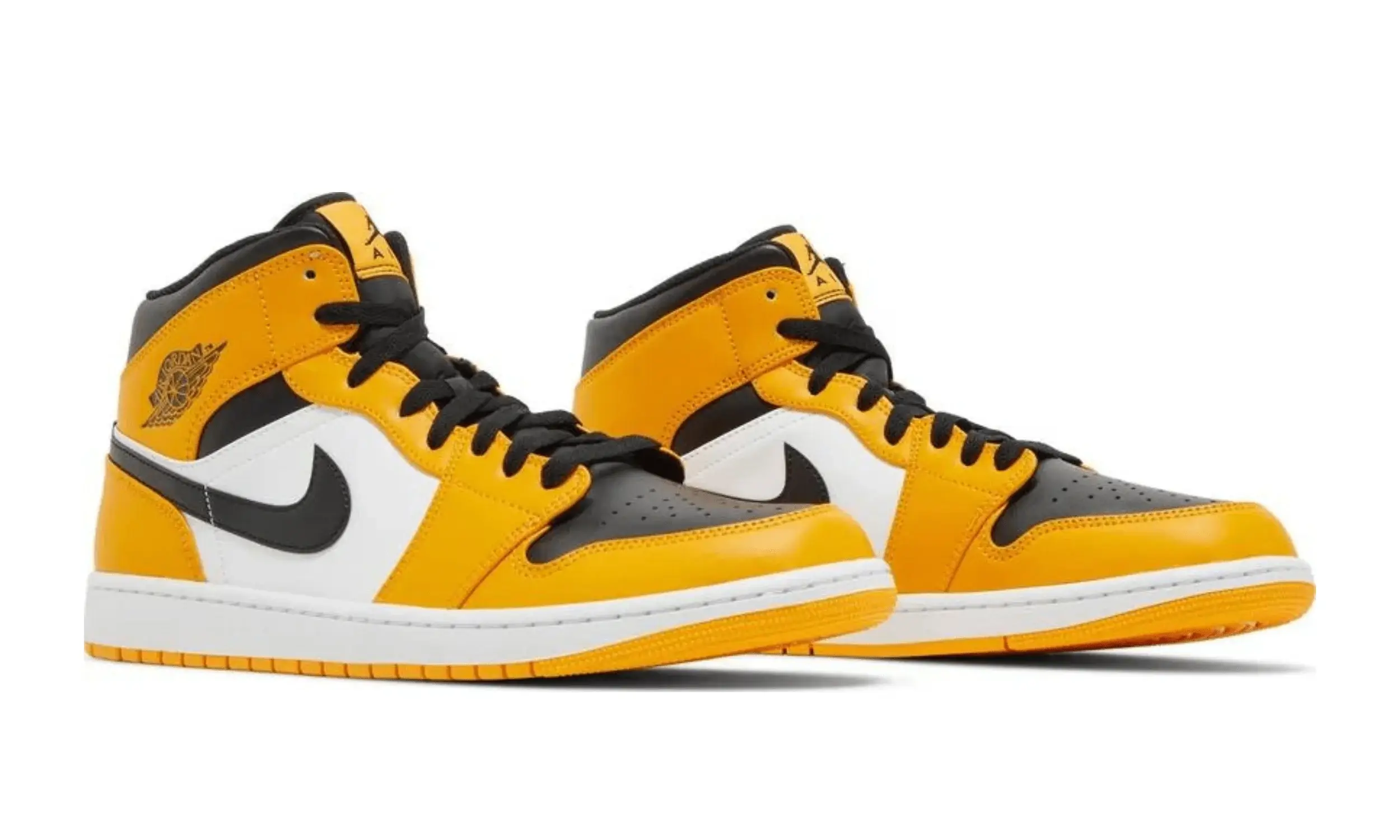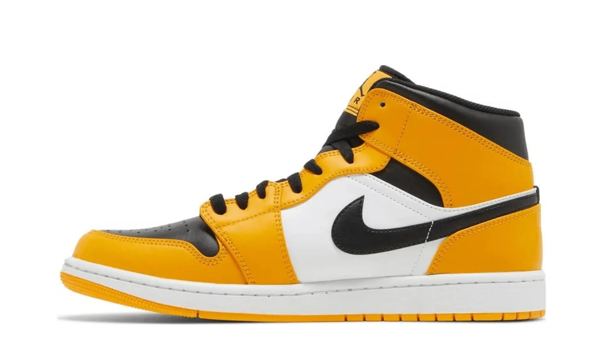 Znaki rozpoznawcze Air Jordan 1 Mid Reverse Yellow Toe to czarne logo Swoosh, motywy Wings, metki Jumpman na językach oraz nadrukowane wkładki. Każdy z tych elementów podkreśla ekskluzywność tego modelu i jego związki z legendarną marką znanego koszykarza — Michaela Jordana. Buty są osadzone na białych podeszwach środkowych, które zapewniają doskonałą amortyzację, a żółte gumowe podeszwy zewnętrzne gwarantują przyczepność na różnych powierzchniach.