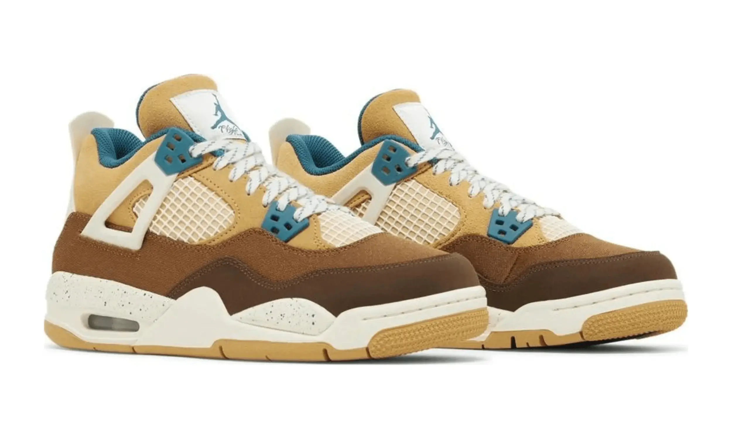 Cholewka butów Air Jordan 4 Cacao Wow wykonana jest z kombinacji brązowego zamszu, tekstylnych paneli oraz skórzanej nakładki na przednią część stopy w odcieniu ciemnej czekolady.
