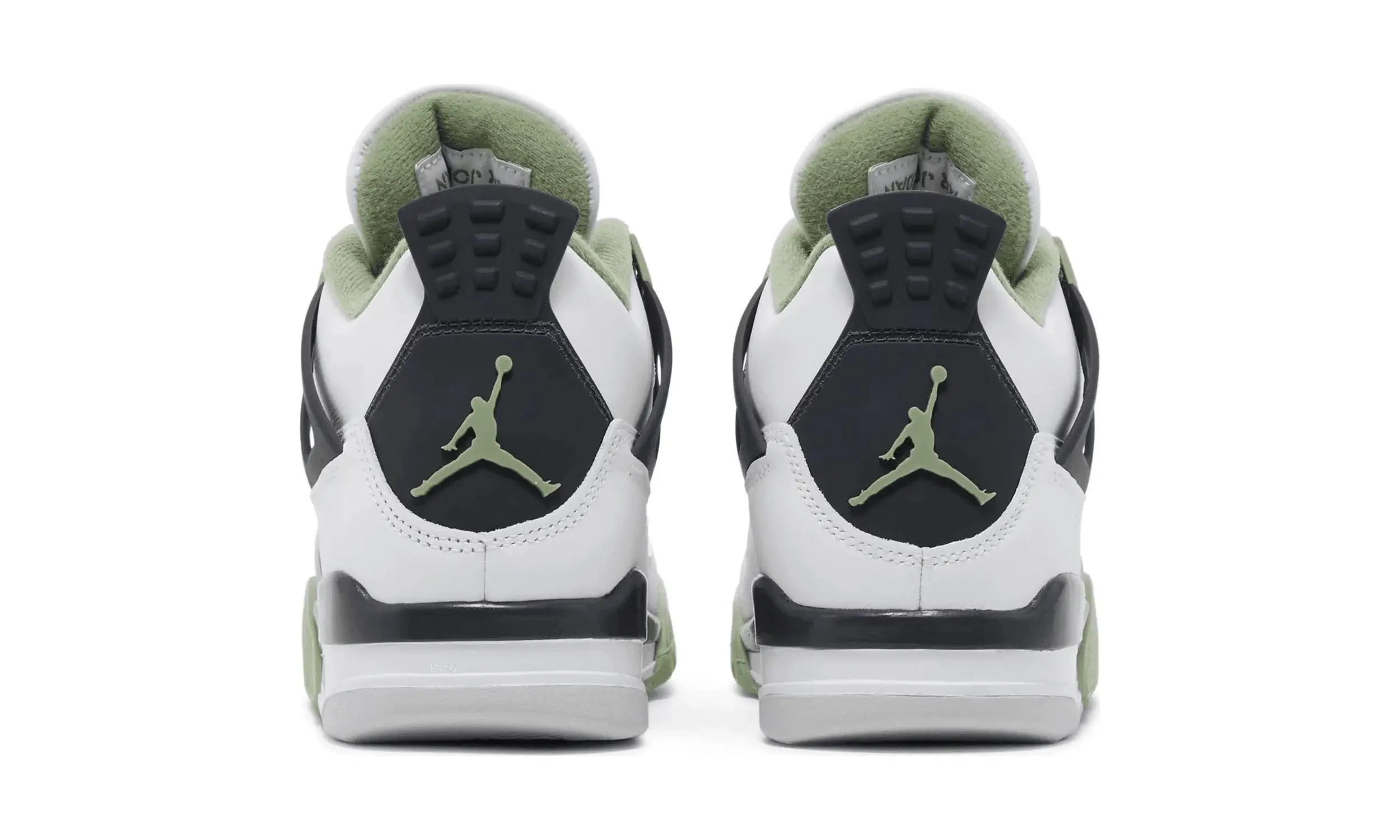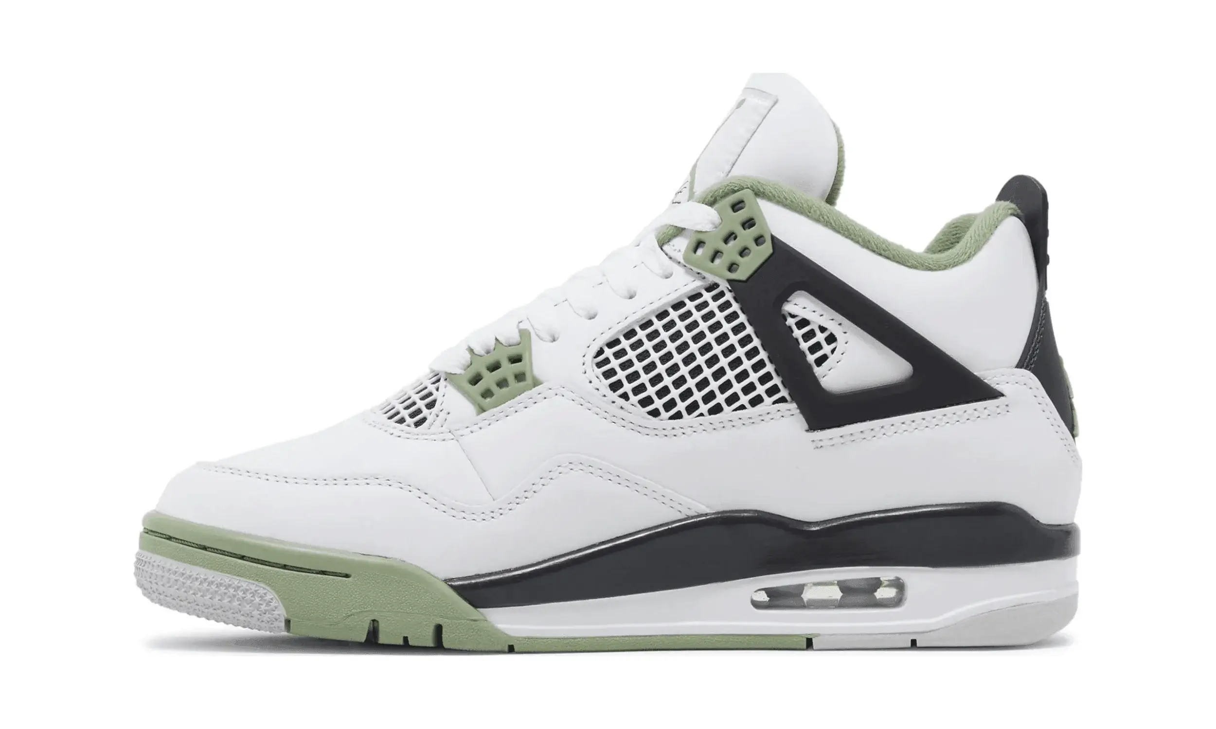 Air Jordan 4 Seafoam to kolejny projekt marki sygnowanej nazwiskiem sławnego amerykańskiego koszykarza wydany zimą 2023 roku. Cholewka wykonana jest z gładkiej białej skóry, która stanowi idealne tło dla kontrastujących akcentów w odcieniu Seafoam Green.