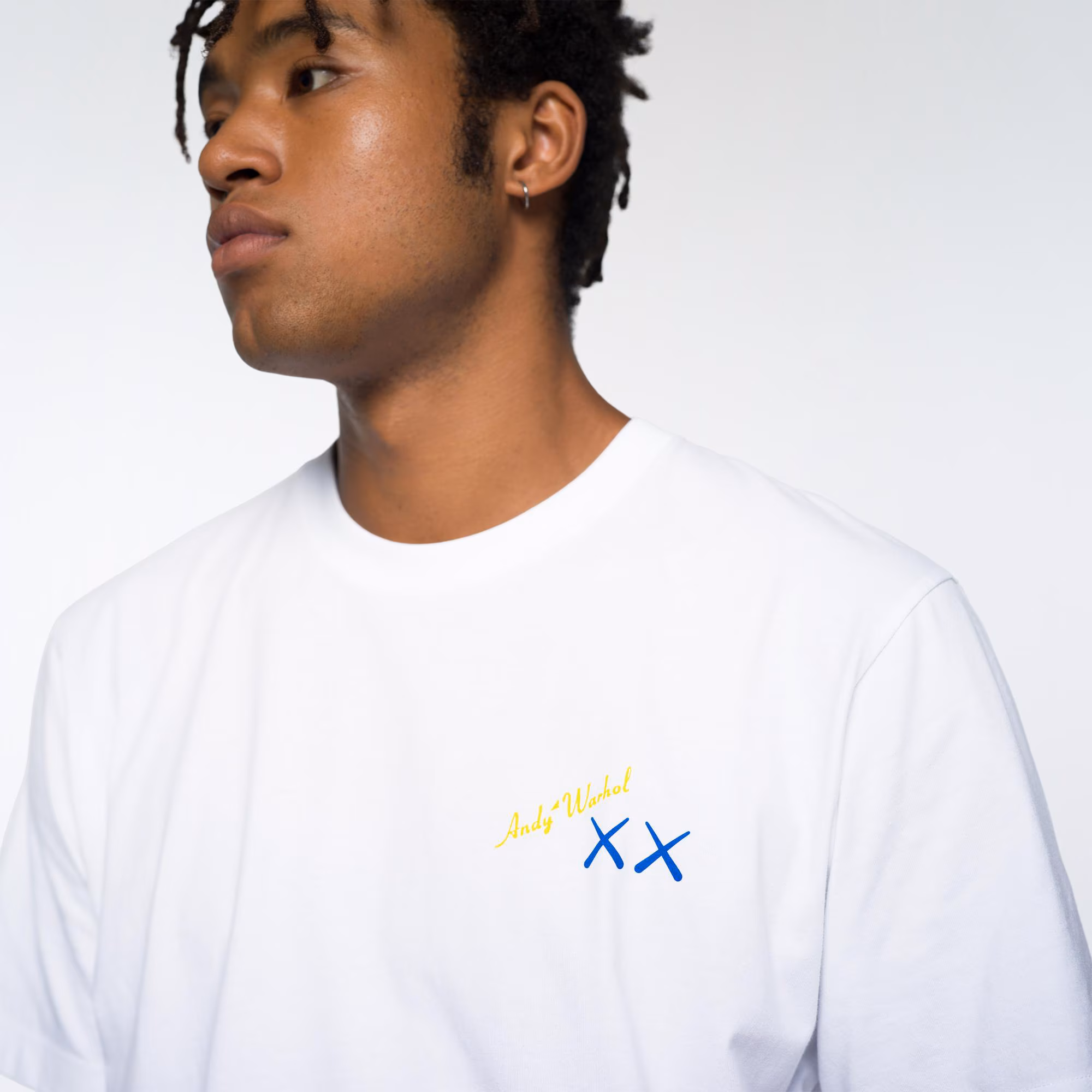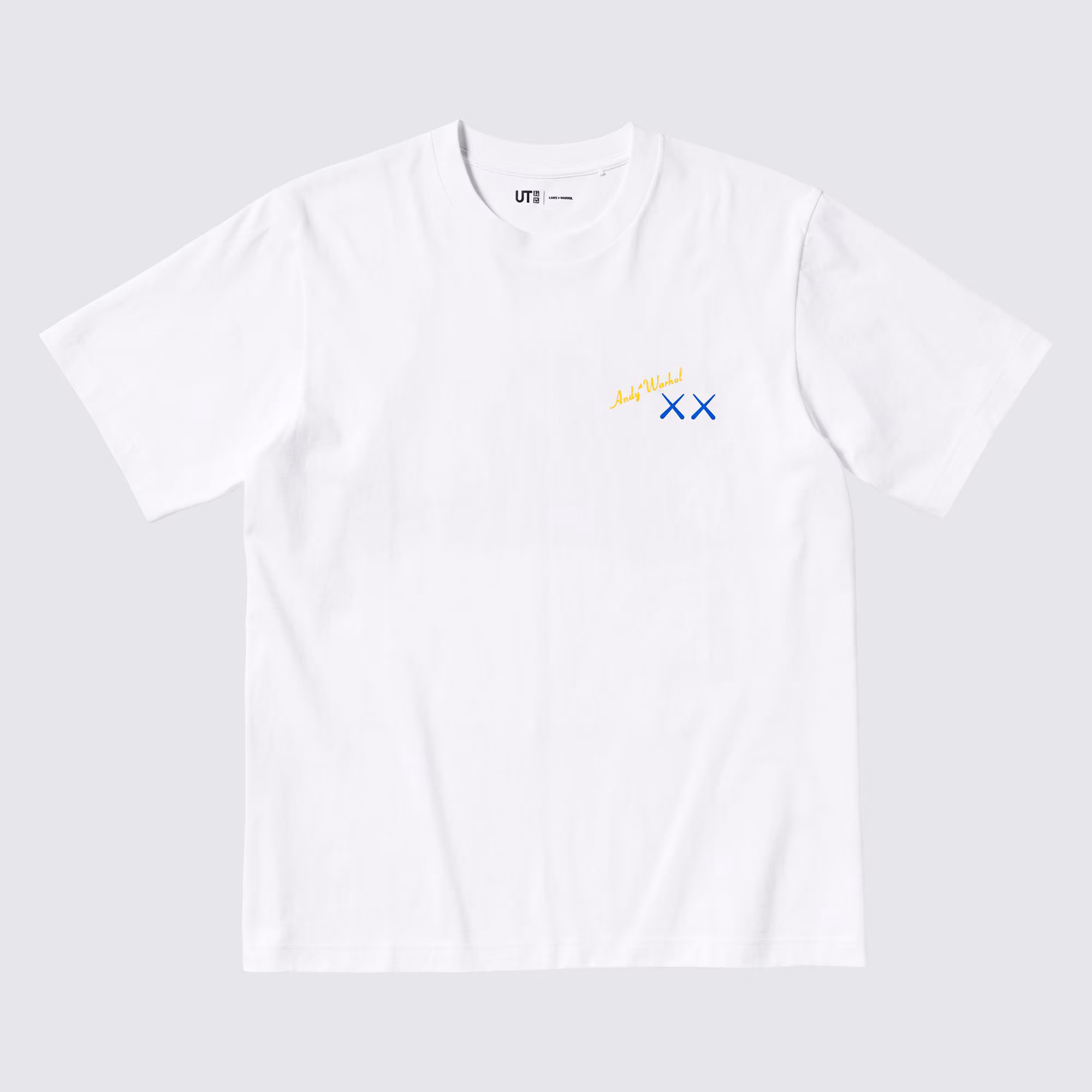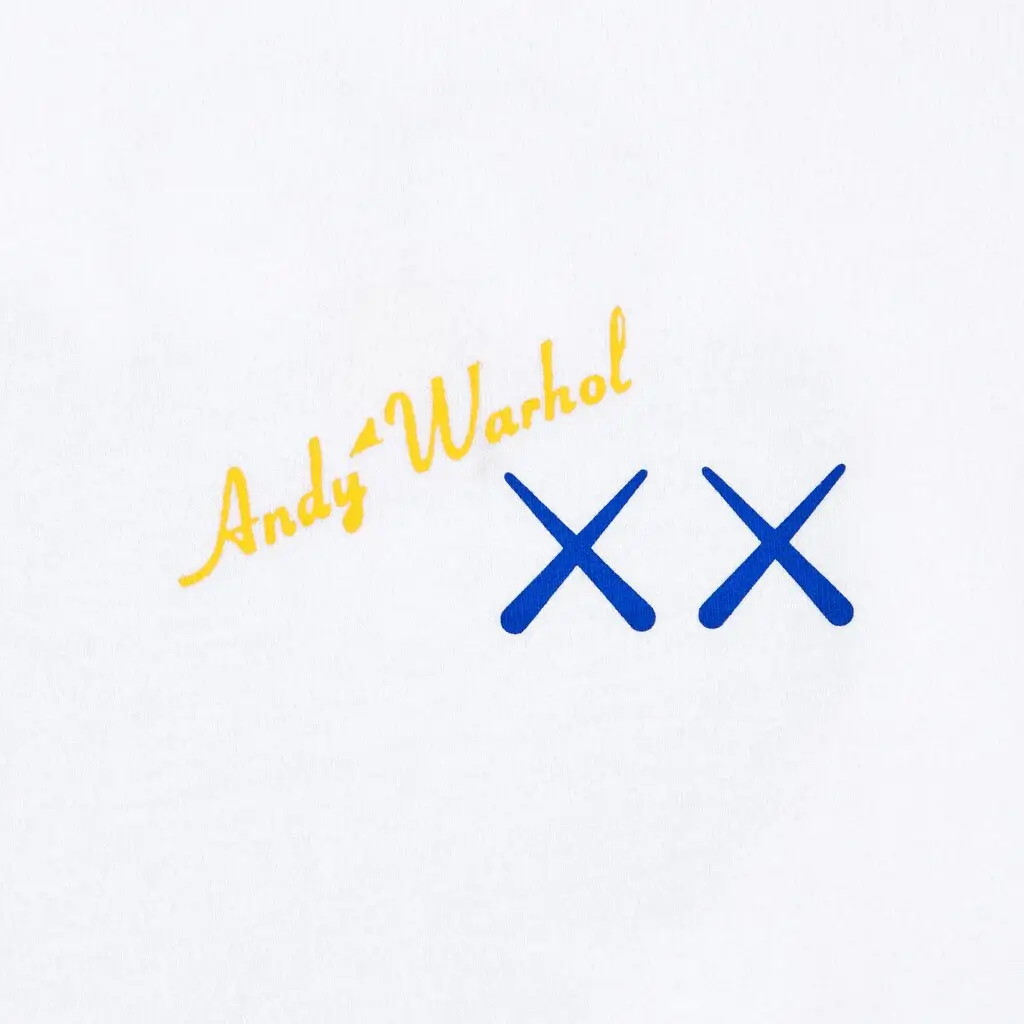 Koszulka wyróżnia się kreatywnym designem, który łączy elementy charakterystyczne dla obu artystów. Na przedzie koszulki znajdują się dwa niebieskie znaki „X” z żółtym podpisem „Andy Warhol”, które nawiązują do ikonografii KAWS. Z tyłu natomiast widnieje niebieska postać BFF trzymająca żółty banan, a nad nią szary napis „PEEL HERE”, dodający koszulce zabawnego akcentu i odniesienia do znanego dzieła Warhola.