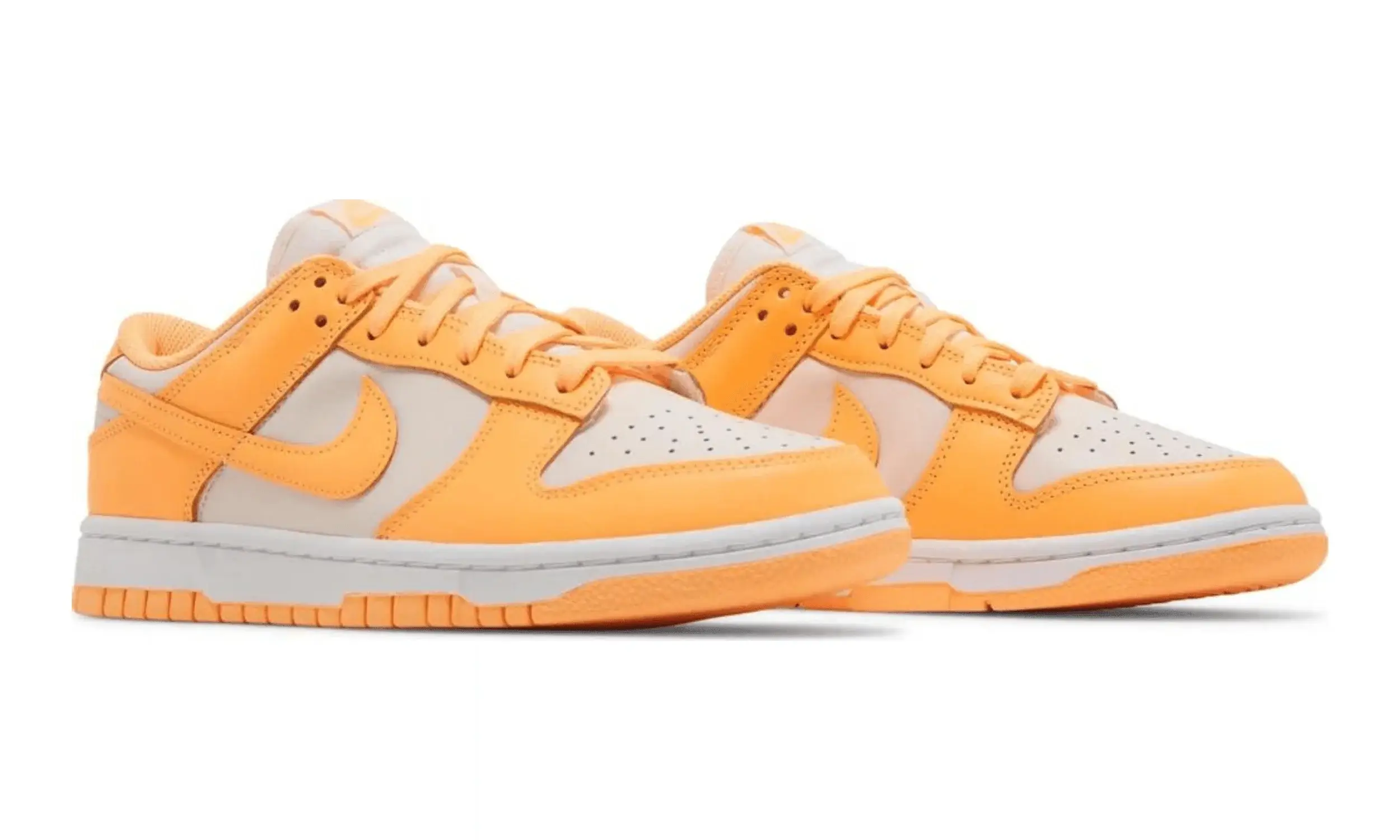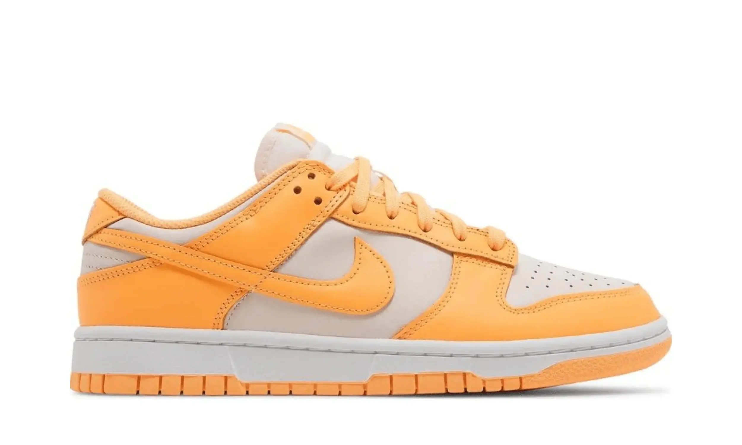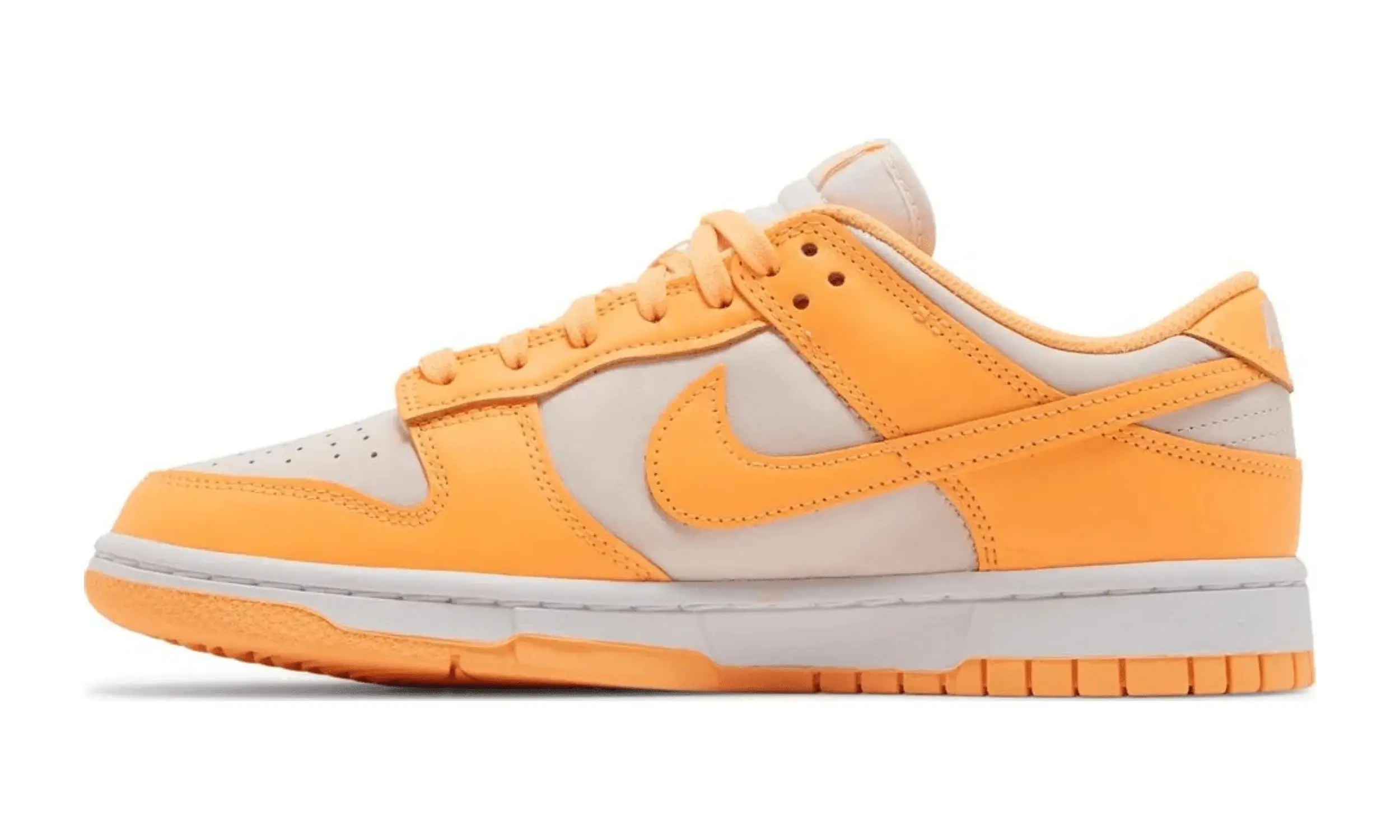 Nike Dunk Low Peach Cream to model inspirowany kultową kolekcją Nike Dunk Low Petera Moore’a z 1985 roku. Buty przyciągają wzrok dwutonową skórzaną cholewką. Dominującym kolorem jest biały, który harmonijnie łączy się z jasnopomarańczowymi wstawkami.