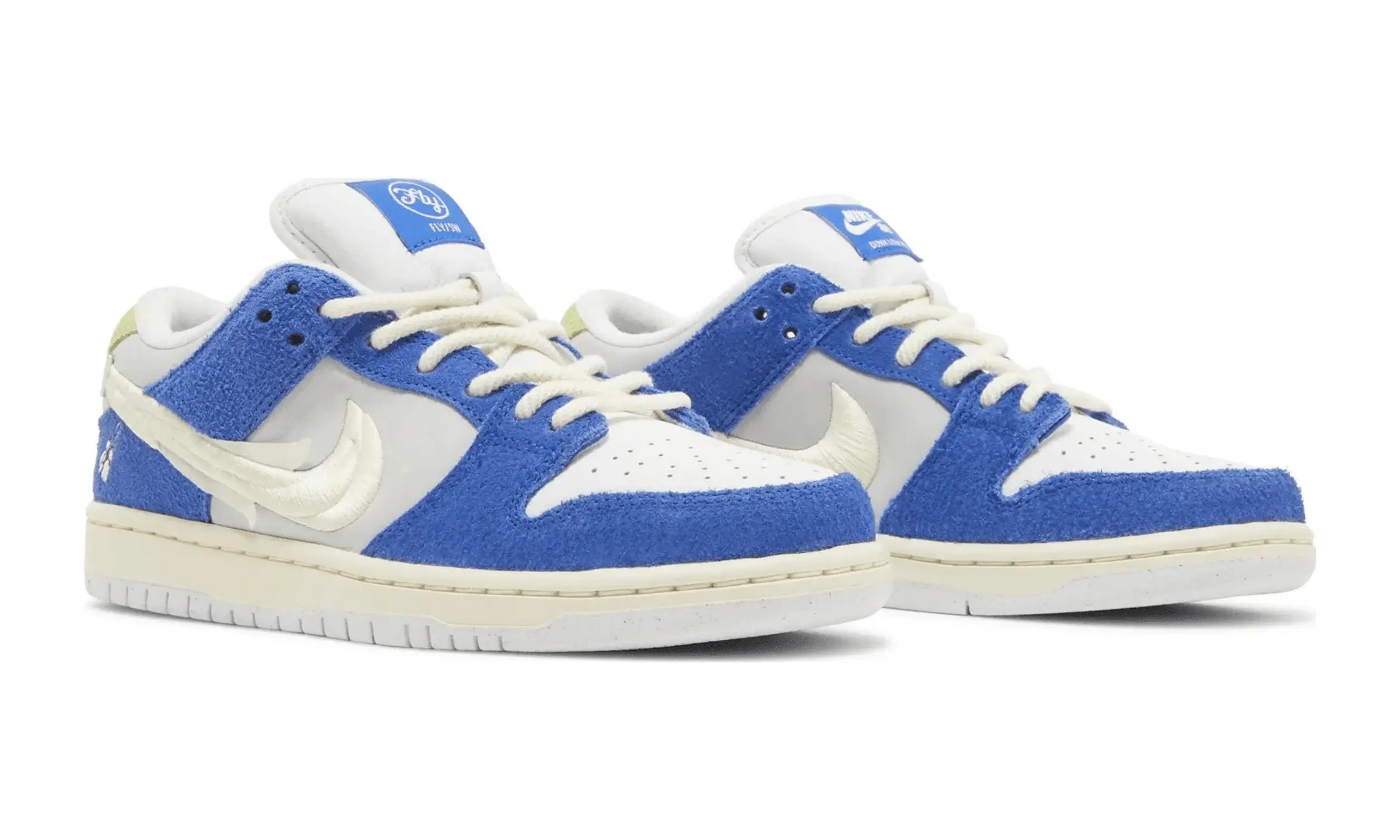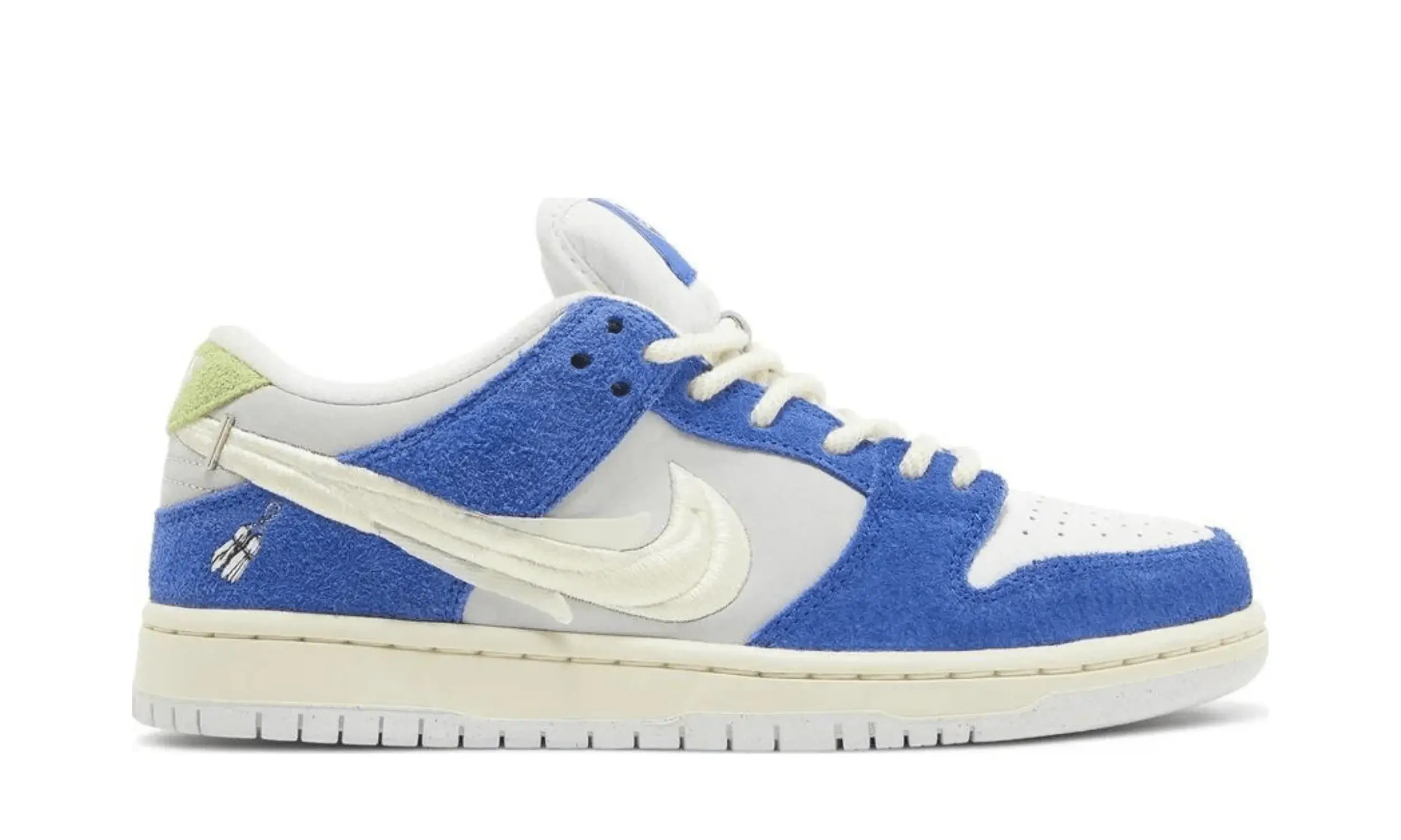 Nike Dunk Low SB Gardenia x Fly Streetwear to projekt, powstały we współpracy z szanghajskim sklepem skateboardowym Fly Streetwear. Bazowa cholewka wykonana z wysokiej jakości białej skóry kontrastuje z odcieniem niebieskiego zamszu na nakładkach. Ta kolorystyczna kombinacja nawiązuje do materiału wyścielającego kosze, w których kwiaty były eksponowane, podkreślając ich piękno.