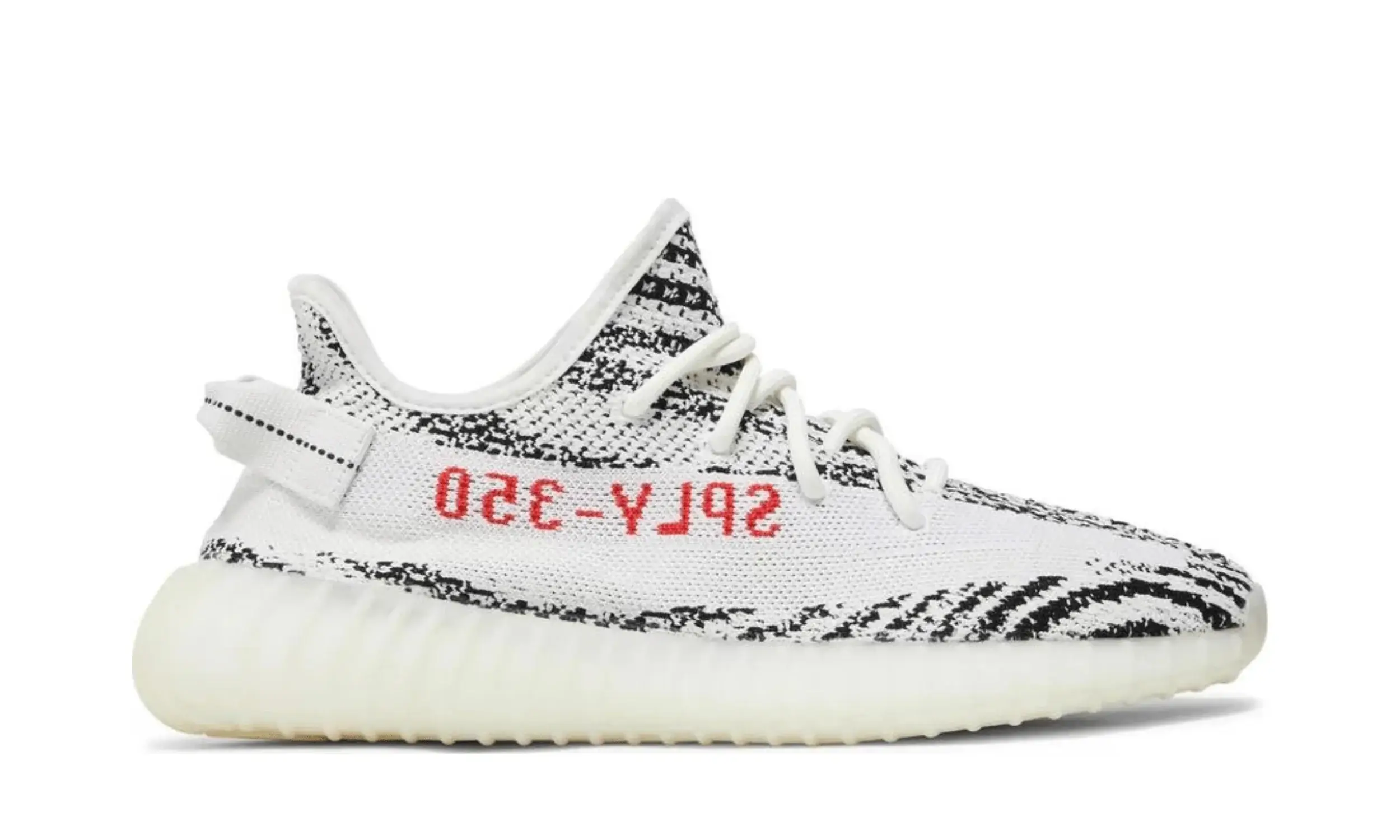 Yeezy 350 Zebra to sneakersy będące dziełem współpracy pomiędzy znanym amerykańskim raperem Kanye Westem a niemiecką firmą Adidas, od lat produkującą odzież i obuwie sportowe. Cholewka w kolorze białym z czarnymi pasami i kultowym dla marki Yeezy, czerwonym napisem „SPLY-350” po boku to podstawa tych sneakersów.