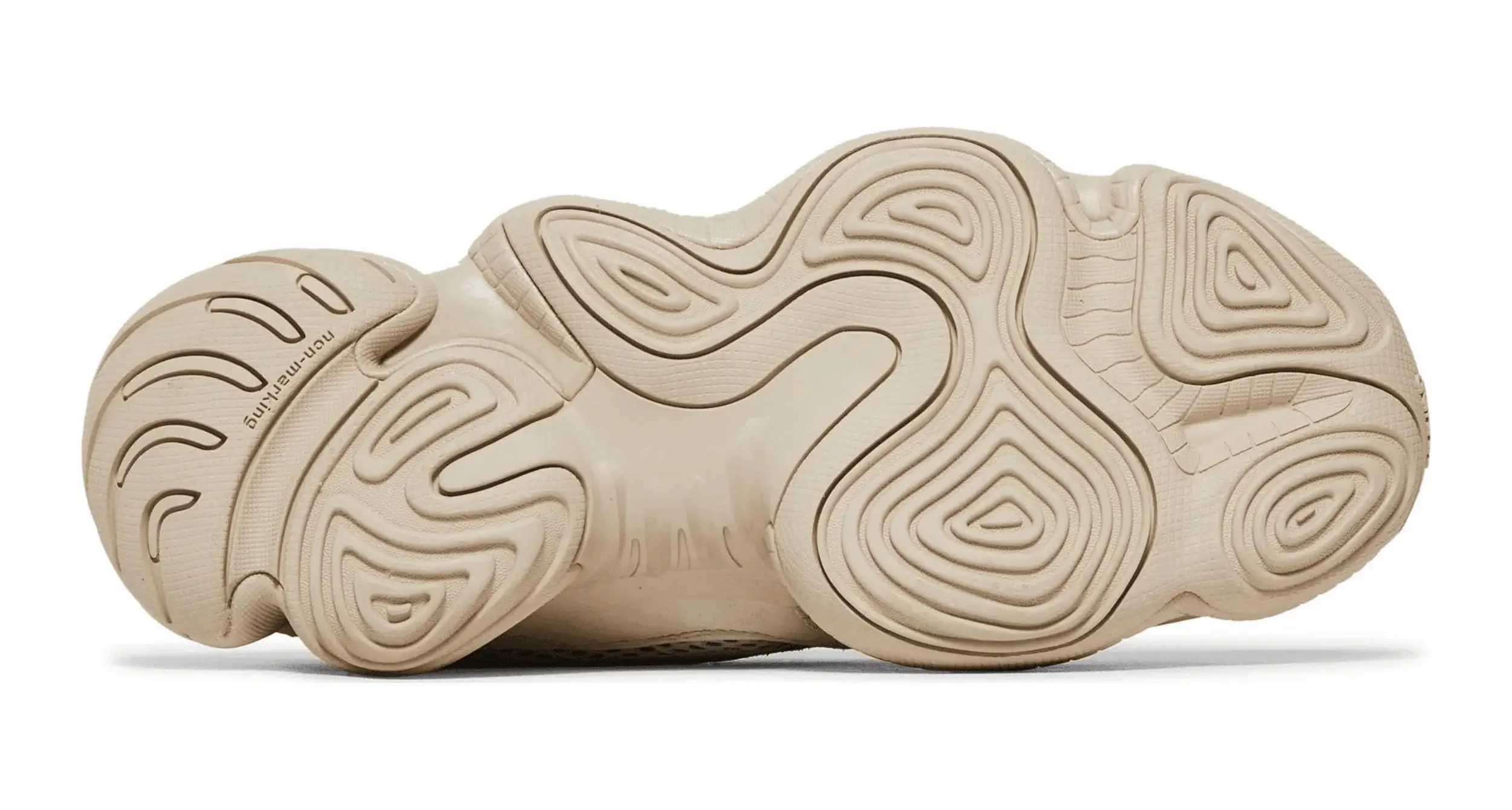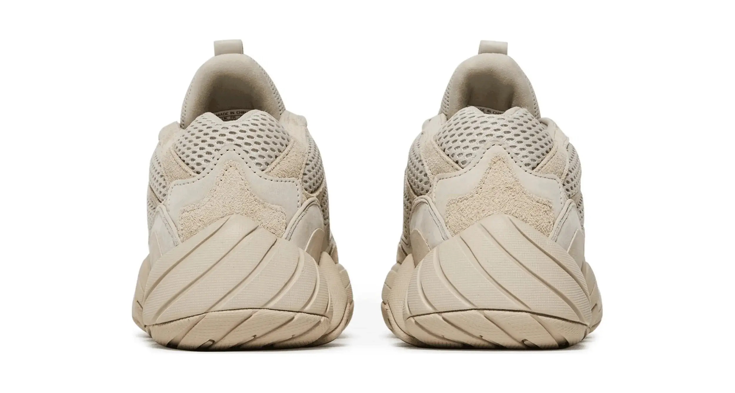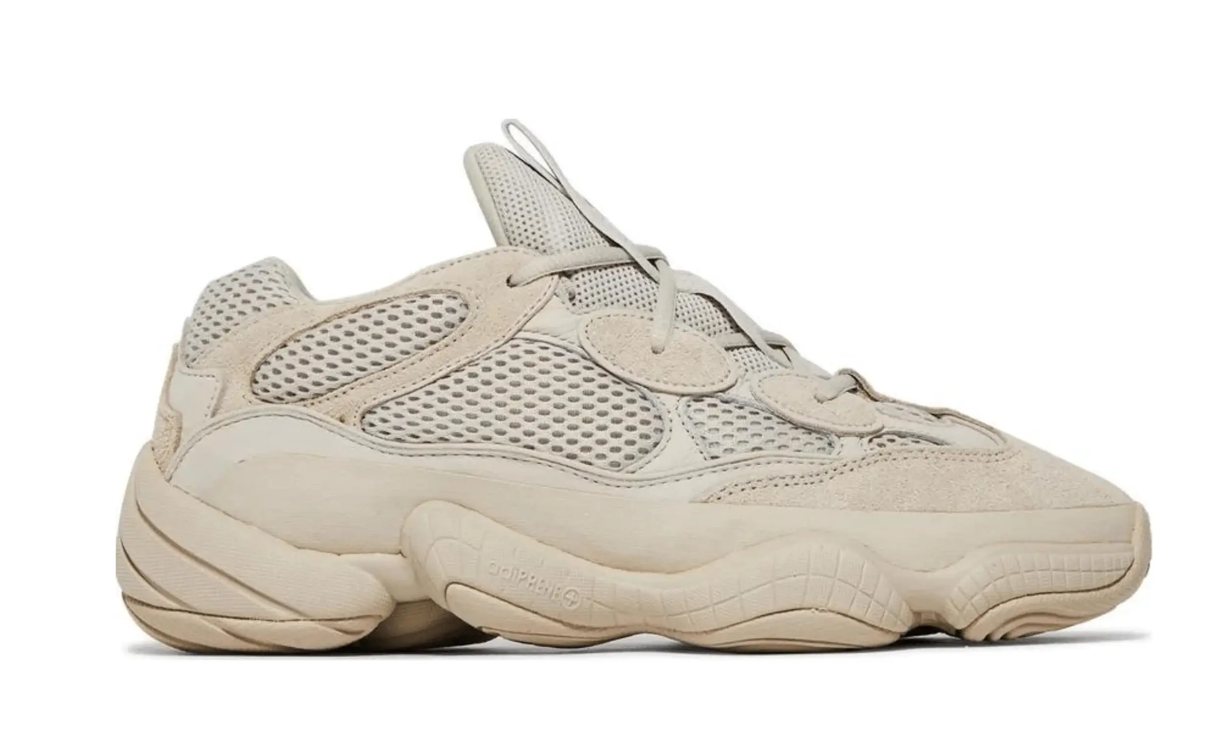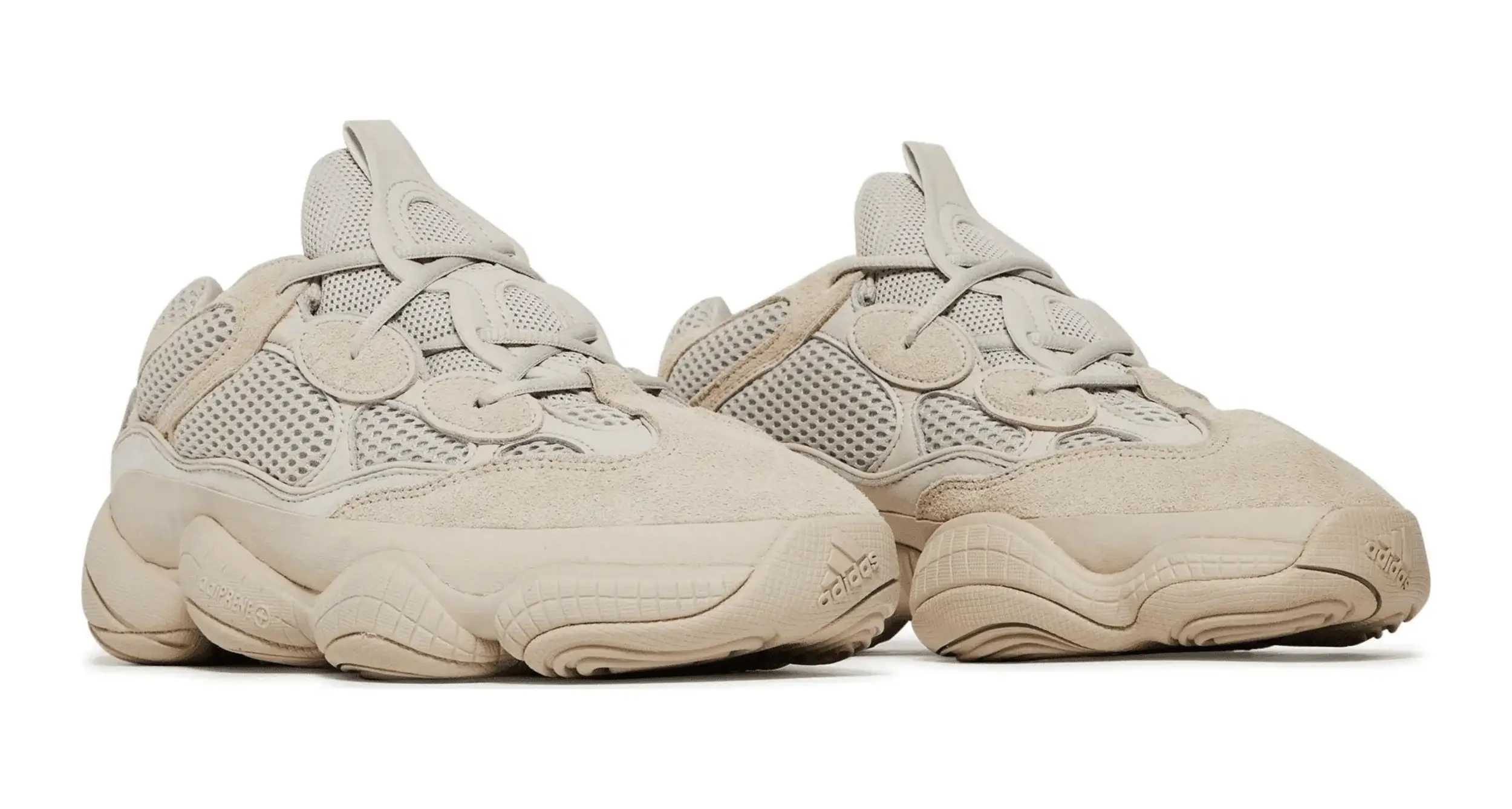Wypuszczone pierwotnie w lutym 2018 r. w ramach limitowanej przedsprzedaży w Nowym Jorku i Los Angeles, buty Yeezy 500 „Blush” trafiły do ogólnej sprzedaży w kwietniu 2018 r. Ich pseudonim jest trafny, ponieważ monochromatyczne jasnoszary kolor ledwo rejestruje się jako kolor . Stonowana paleta kontrastuje z odważną sylwetką, z panelową cholewką z siateczki i zamszu w połączeniu z mocną podeszwą środkową nawiązującą do technologii adidas Feet You Wear z lat 90.