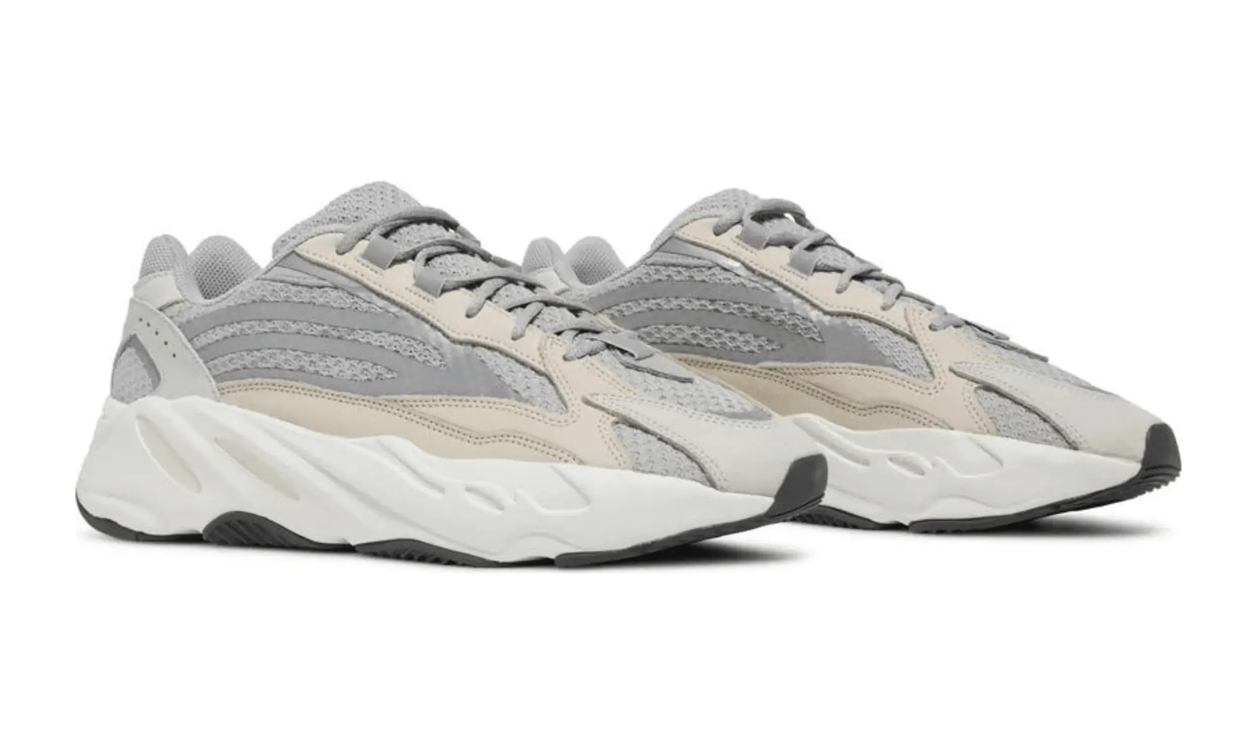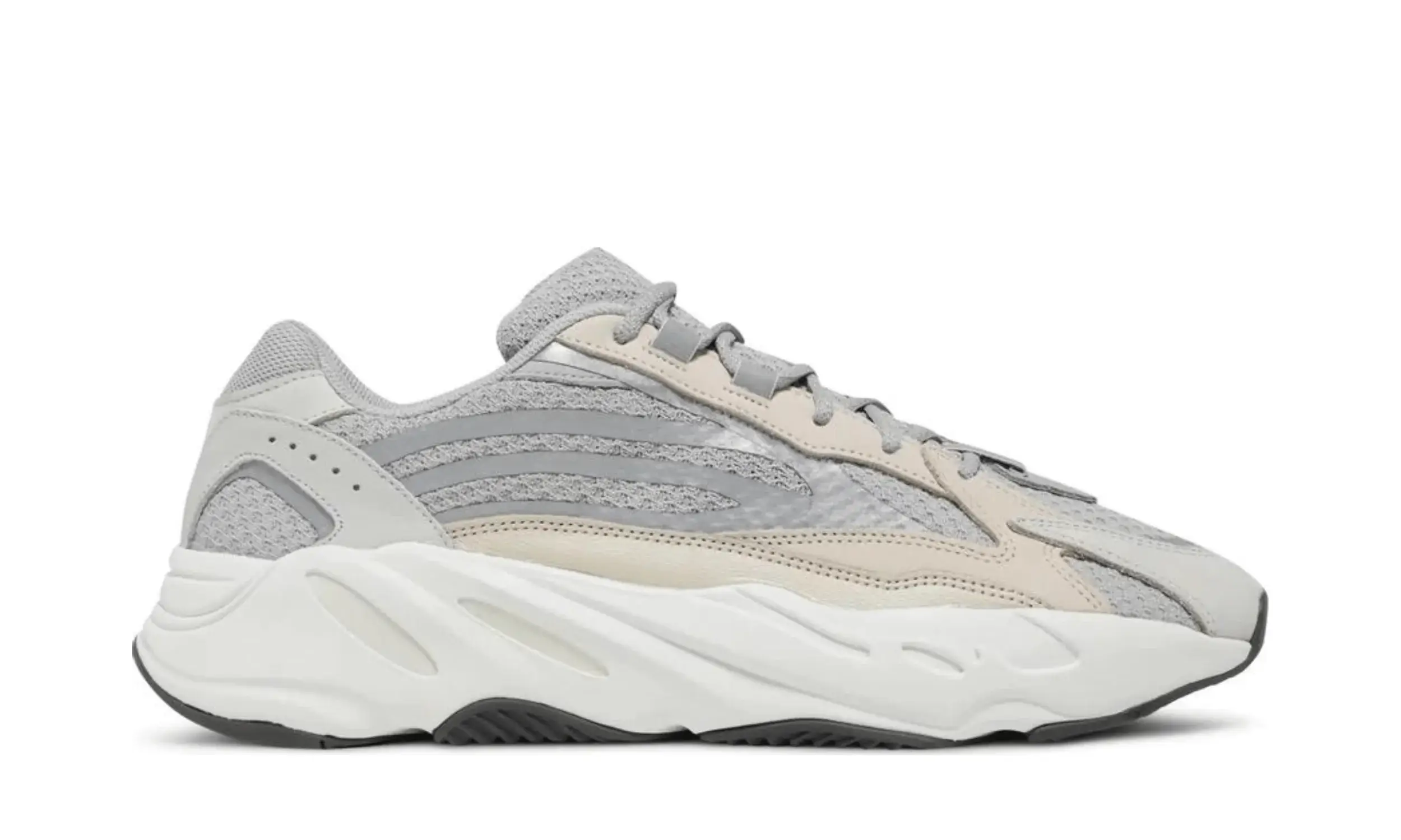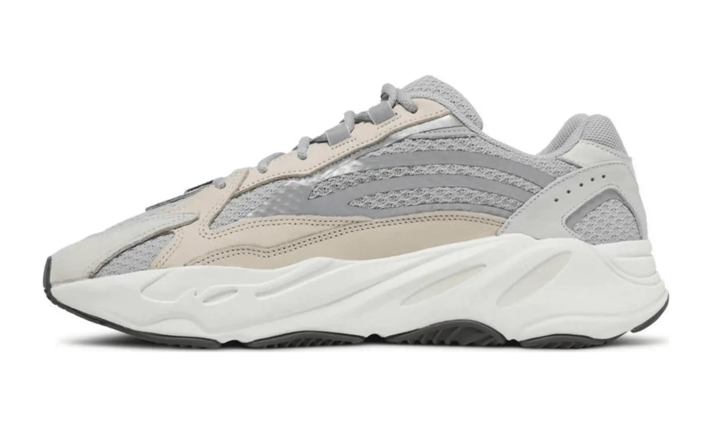 Adidas Yeezy Boost 700 V2 Cream zapewnia prostą kolorystykę . Cholewka ma dzianinę w jasnoszarym odcieniu, wzmocnioną stonowanymi, bezszwowymi skórkami i brązowymi nakładkami z nubuku. Wykończenie w kolorze złamanej bieli wyróżnia przesadną podeszwę środkową z pianki EVA, z rzeźbionymi ścianami bocznymi, które kryją wpuszczaną jednostkę Boost na całej długości. Pod stopą gumowa podeszwa zewnętrzna wykorzystuje klasyczny wzór bieżnika, który zapewnia doskonałą przyczepność.